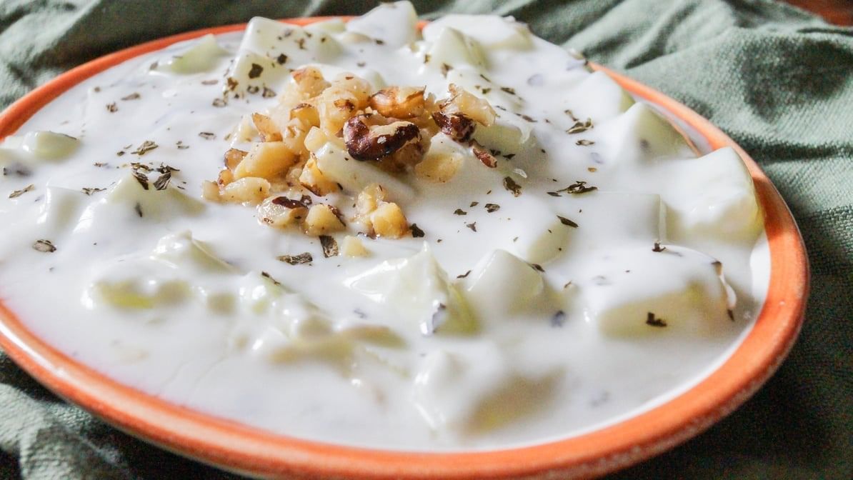 Yogurt dip with diced cucumber and mint