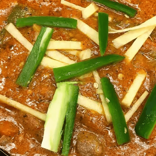 Stir fried lamb stewed in tomato, ginger, onion, and garlic with jalapeno for a tart, zesty, spicy flavor. Includes rice, chickpeas, salad, and regular buttered naan on the side. Dipping chutney sauces included on the side
