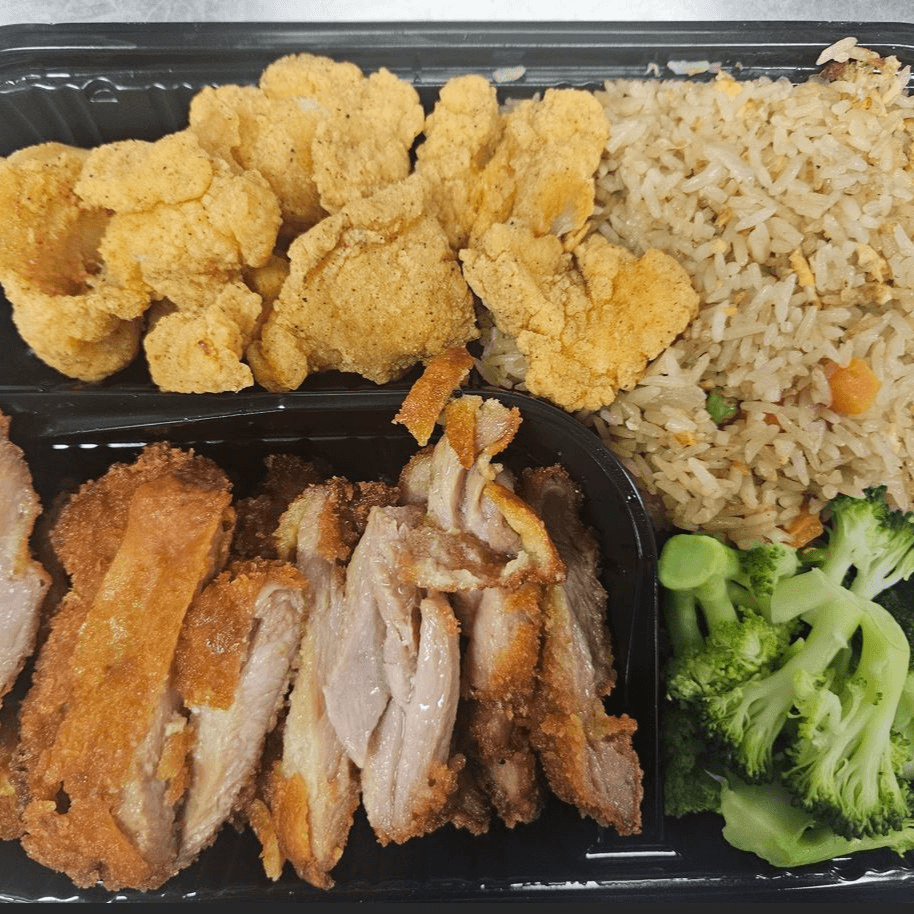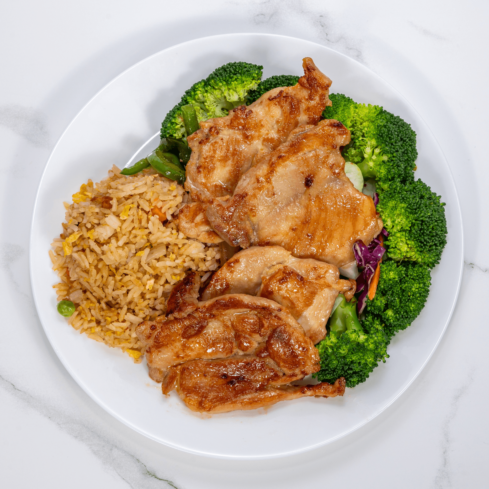 Served with vegetables, macaroni salad or spring roll, & steamed rice or fried rice