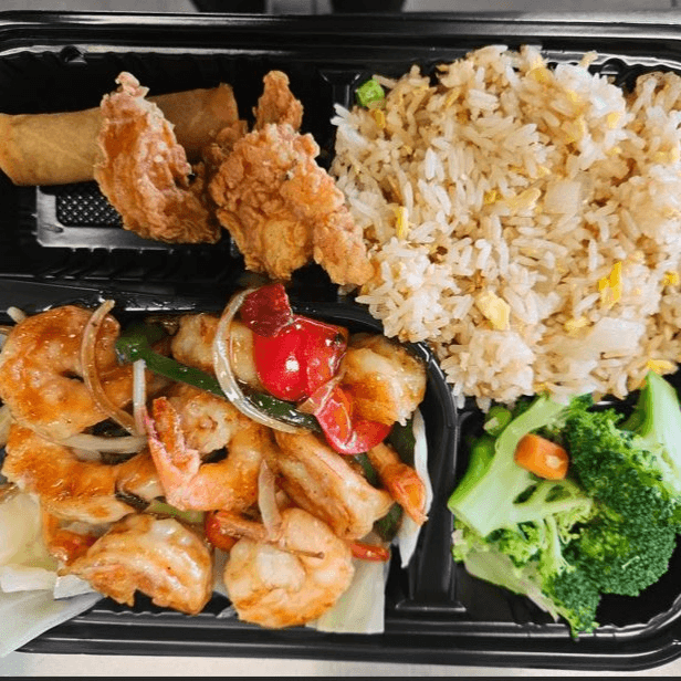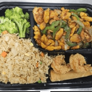 Served with 1 can soda, house salad, fried shrimp (2) or spring roll & steamed rice or fried rice