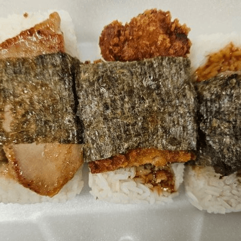 Beef, BBQ, chicken katsu. A Hawaiian-Japanese favorite. Grilled over seasoned rice, wrapped in seaweed for the perfect handheld bite